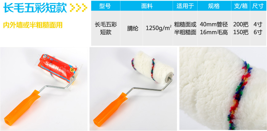 滾筒刷又稱輥筒刷,搭配漆盤使用更好,由于涂面大,所以是最省力、省時的涂刷工具。在接上延長桿后,可輕易粉刷墻面高處或天花板。滾筒刷制造在中國已有30年的歷史,其質(zhì)量表現(xiàn)的關(guān)鍵部分由滾絨布和滾筒“管+芯+卡”技術(shù)質(zhì)量決定,其中滾筒管芯性能的好壞可以直接影響使用感覺和使用壽命。市場上普遍銷售的滾筒使用劣質(zhì)不吸漆的低彈絳綸絨布,且管芯靠“單管塞單卡”支撐滾刷支架,在滾涂過程中會表現(xiàn)出來滑芯、卡裂、管裂、支撐滾頭不穩(wěn)定、跳動、著面不平、不耐溶劑等缺陷,造成涂刷不均勻,耗時耗力,且刷面不美觀,影響使用效果。