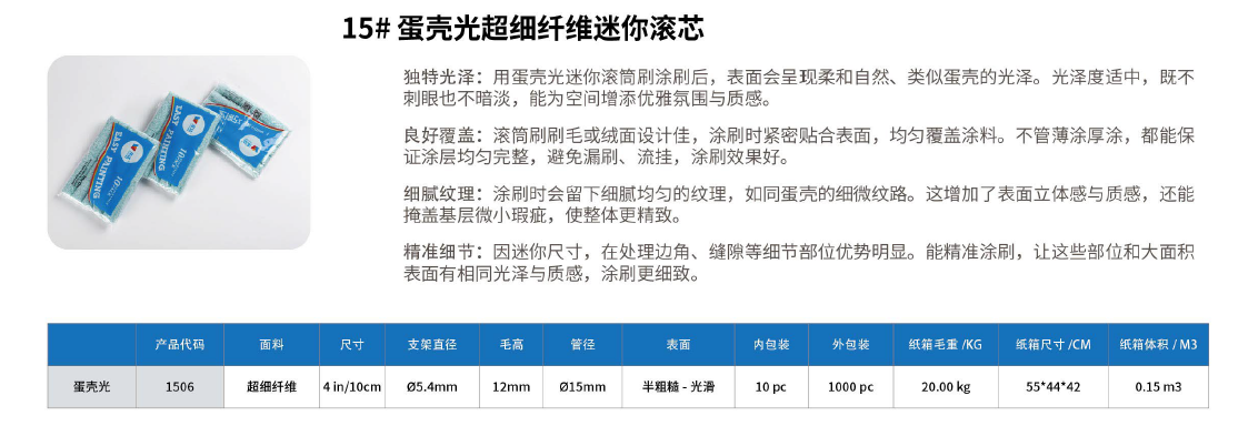 獨特光澤:用蛋殼光迷你滾筒刷涂刷后,表面會呈現柔和自然、類似蛋殼的光澤。光澤度適中,既不