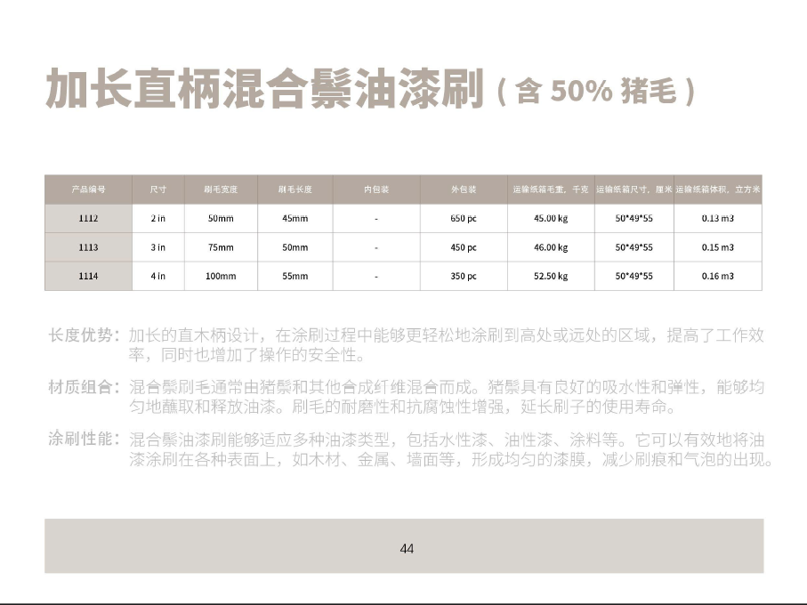 涂刷性能: 混合鬃油漆刷能夠適應(yīng)多種油漆類型,包括水性漆、油性漆、涂料等。